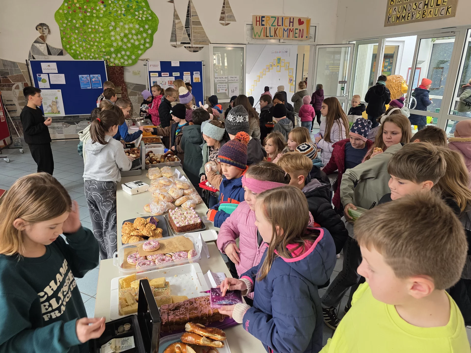 Am Dienstag, den 11.11.25 und Mittwoch, den 12.11.25 veranstaltete die Klasse 4c der Grundschule Kümmersbruck gemeinsam mit Frau Honig einen Pausenverkauf für einen guten Zweck. Unter dem Motto „Gemeinsam kann man viel erreichen“ erzielte die Klasse einen beeindruckenden Erlös. Die Einnahmen werden an das Amberger Hospiz gespendet. Täglich darf man dankbar sein, wie gut es einem geht – und dabei nicht vergessen, dass es Menschen gibt, die wirklich große Lasten zu tragen haben. Genau aus diesem Grund wollte die Klasse 4c unterstützend tätig werden. Die Kinder zeigten vollen Einsatz beim Organisieren und Verkaufen, während die Eltern fleißig backten und kochten. Alle können stolz auf dieses tolle Gemeinschaftsprojekt sein!