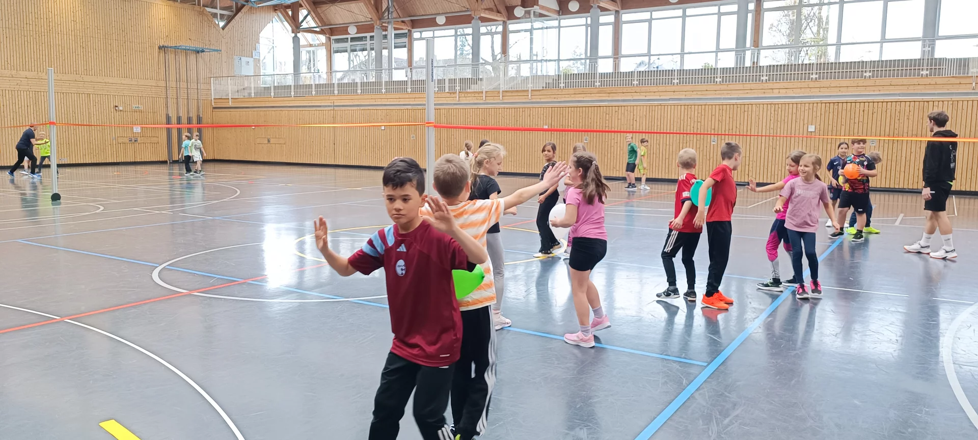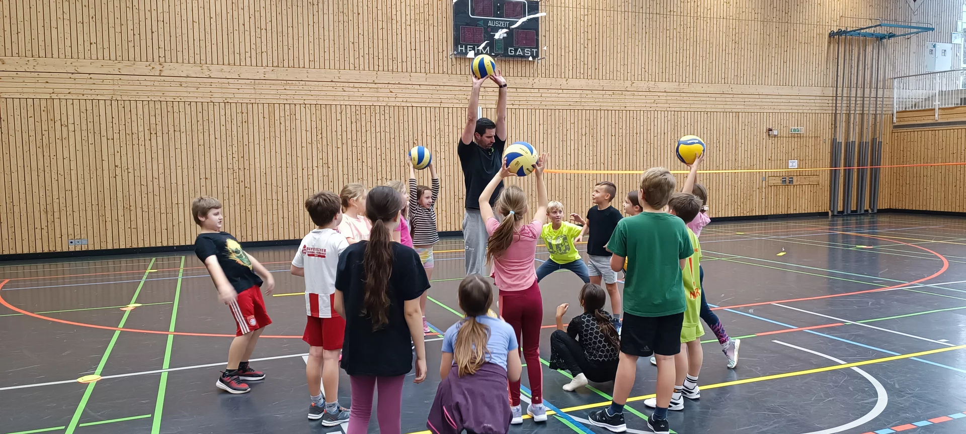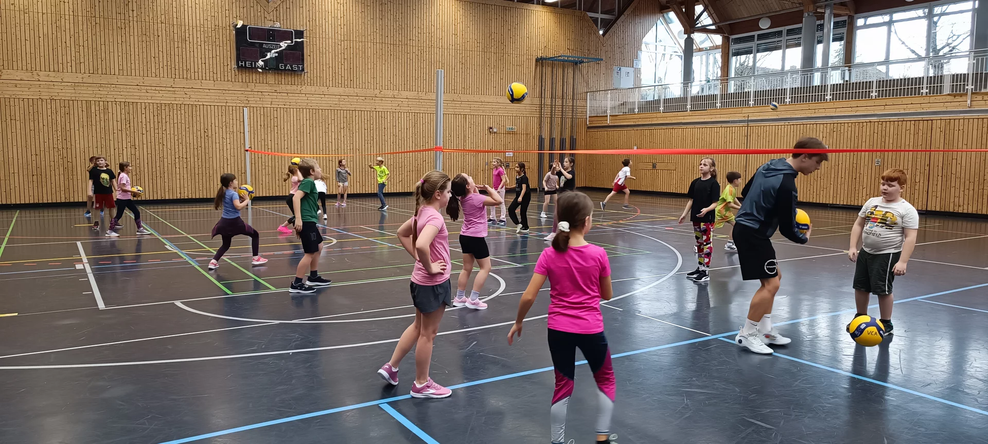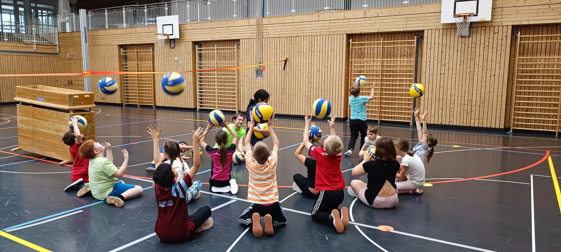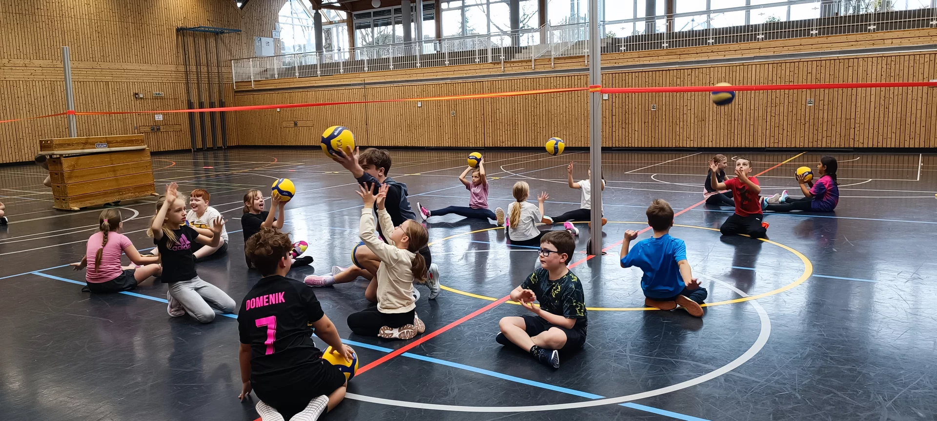 Die Kinder der 3. Klassen freuten sich über eine abwechslungsreiche Trainingseinheit in der Ballsportart "Volleyball" und waren voller Begeisterung beim abschließenden Volleyball-Cup dabei.